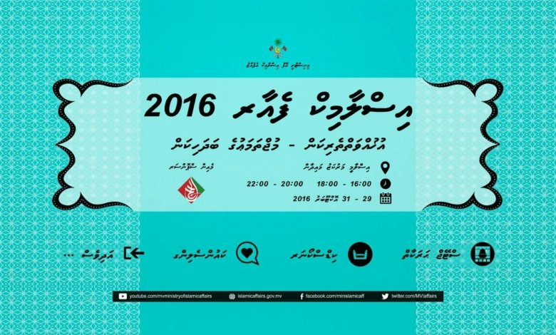 މިނިސްސްޓްރީ އޮފް އިސްލާމިކް އެފެއަރޒުން އިންތިޒާމު ކޮށްގެން ބާއްވާ އިސްލާމިކް ފެއާރ 2016 މި އޮކްޓޯބަރ މަހު ބާއްވާނެ ކަމަށް އެ މިނިސްޓްރީން ބުނެފިއެވެ.