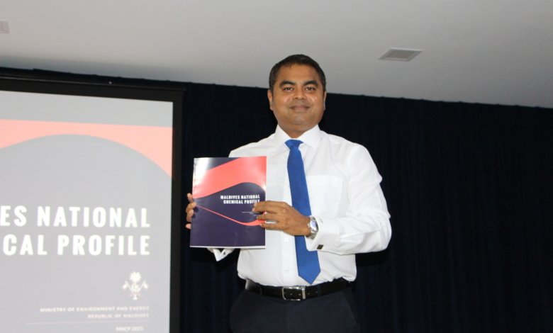 ޗަމްޕާ ސެންޓްރަލް ހޮޓަލުގައި ބޭއްވި ރަސްމިއްޔާތުގައި ނޭޝަނަލް ކެމިކަލް ޕްރޮފައިލް އިފްތިތާޙްކޮށްދެއްވީ މިނިސްޓަރ އޮފް އެންވަޔަރަންމަންޓް އެންޑް އެނަރޖީ ޠާރިޤް އިބްރާހީމެވެ.
