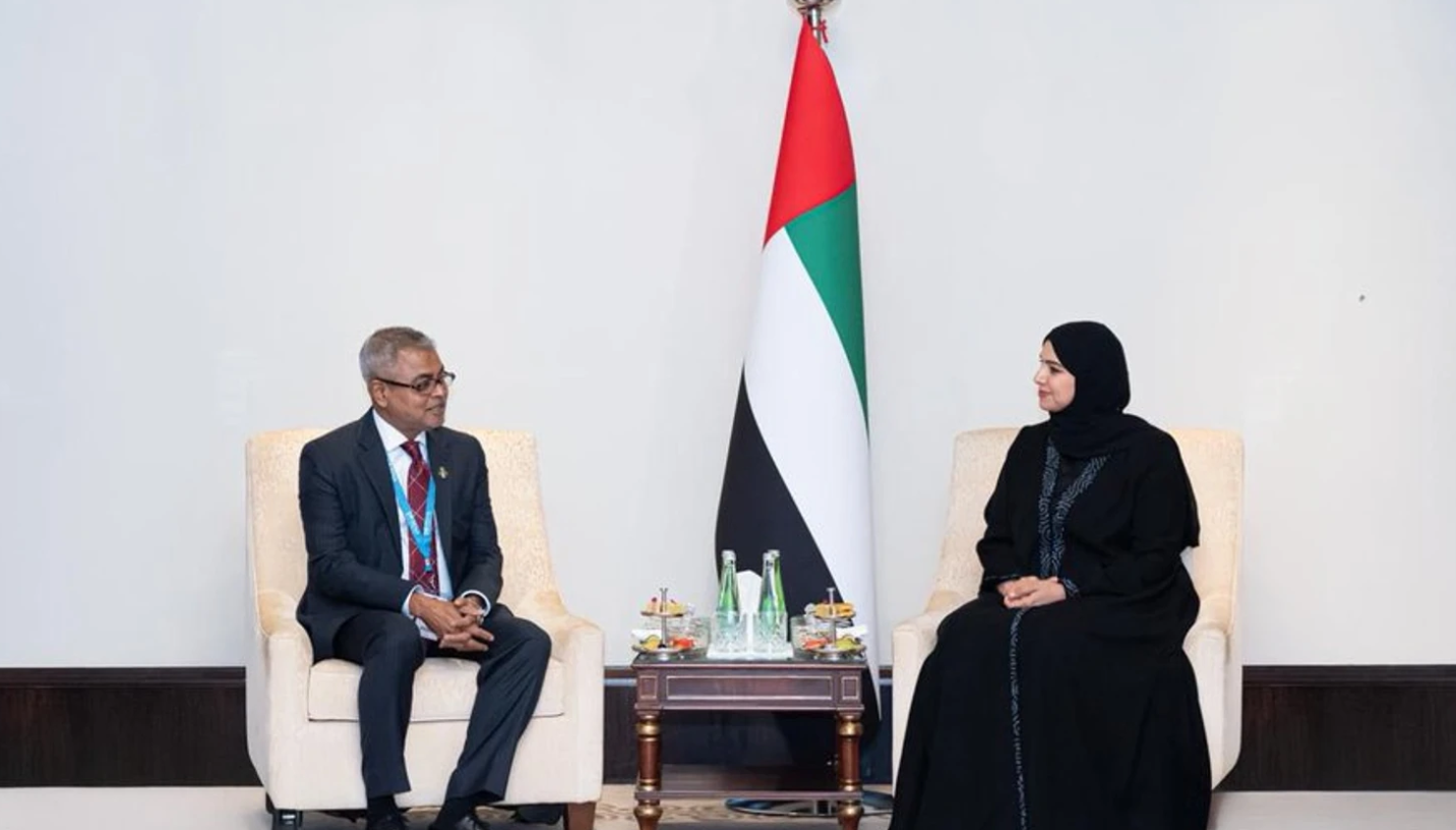 މިނިސްޓަރ އޮފް ޓޫރިޒަމް އެންޑް އެންވަޔަރަމަންޓް އޮނަރަބަލް ޠާރިޤް އިބްރާހީމް، ޔުނައިޓެޑް އެރަބް އެމިރޭޓްސް (ޔޫ.އޭ.އީ) ގެ މިނިސްޓަރ އޮފް ކްލައިމެޓް ޗޭންޖް އެންޑް އެންވަޔަރަންމަންޓް ހަރ އެކްސެލެންސީ ޑރ. އާމިނާ އަލް ދަހާކްއާ ބައްދަލުކުރައްވައިފިއެވެ.