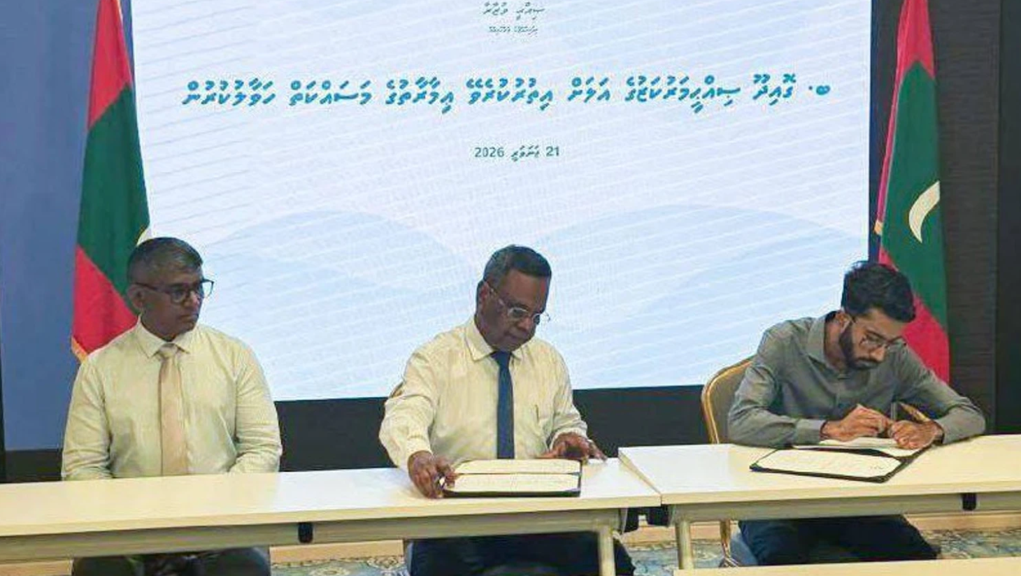 ޞިއްޙީ ވުޒާރާގައި ބޭއްވި ޚާއްސަ ރަސްމިއްޔާތެއްގައި މިނިސްޓްރީގެ ފަރާތުން އެއްބަސްވުމުގައި ސޮއިކުރެއްވީ މިނިސްޓަރ އޮފް ސްޓޭޓް ފޯ ހެލްތު މުޙައްމަދު މާހިރު އެވެ.